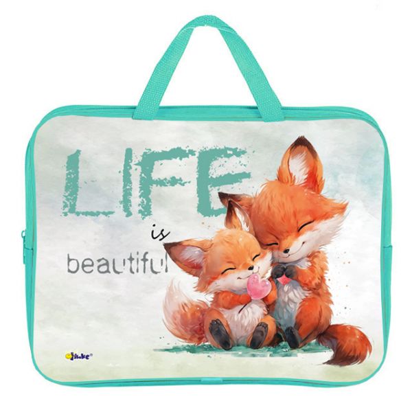Папка на молнии с ручками 1 отд А4 Лисички 350*265*45мм полиэстер 88893