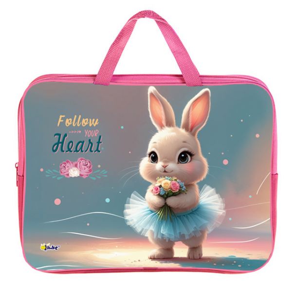 Папка на молнии с ручками 1 отд А4 Милый зайчик 350*265*45мм полиэстер 88896