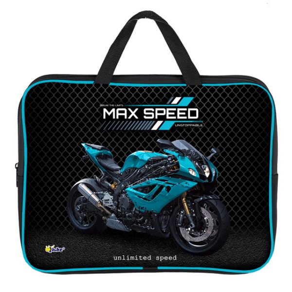 Папка на молнии с ручками 1 отд А4 Мотобайк 350*265*80мм полиэстер 88862