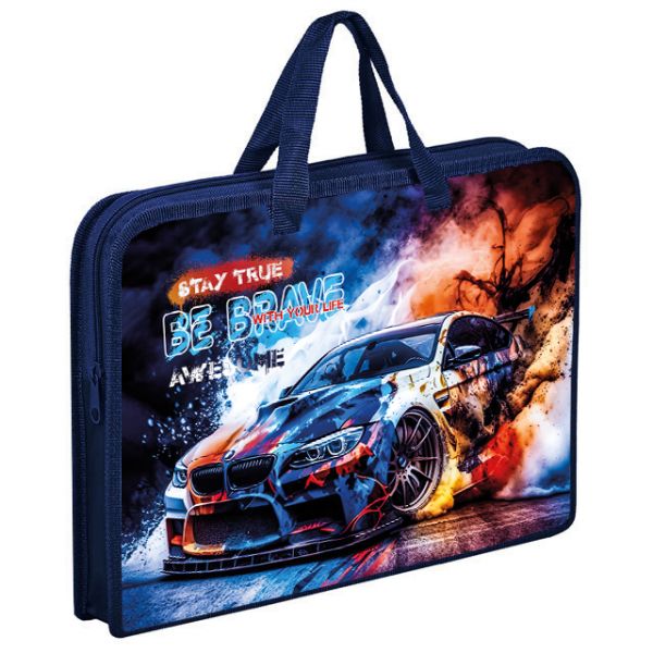 Папка на молнии с ручками 1 отд А4 Ночной дрифт дизайн с двух сторон 88537