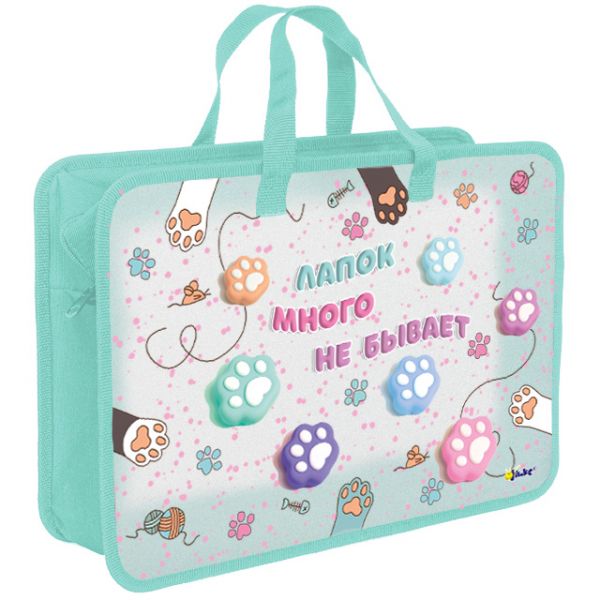Папка на молнии с ручками 1 отд А4 Таба лапки дизайн с двух сторон 88706