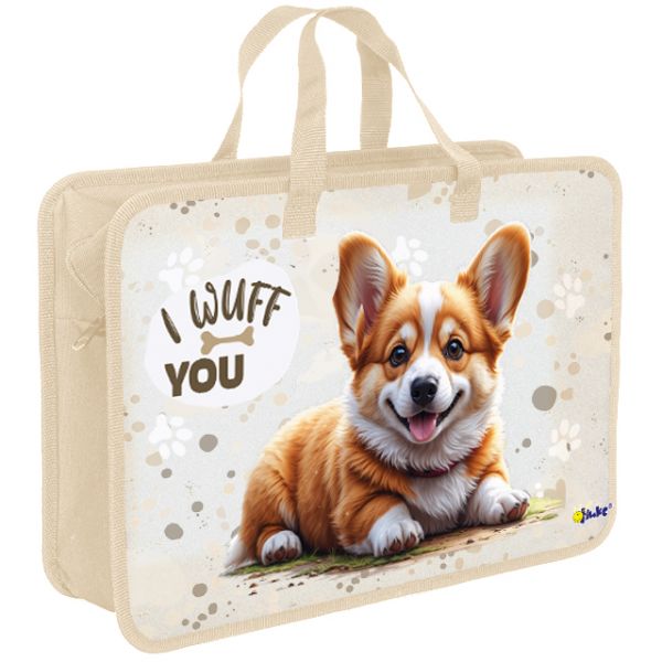 Папка на молнии с ручками 1 отд А4 Забавный корги дизайн с двух сторон 88724