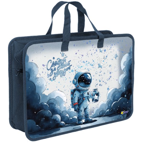 Папка на молнии с ручками 1 отд А4 Космонавт и звезда дизайн с двух сторон 88727