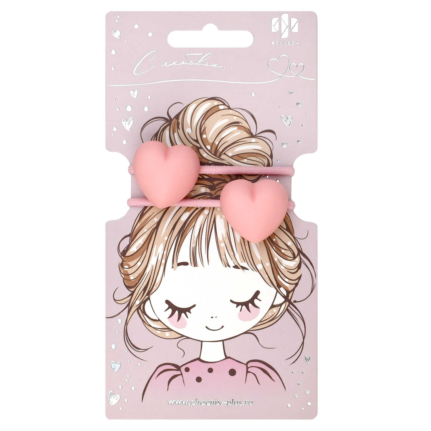 Набор резинок для волос арт. 71849 / 10 СЕРДЕЧКИ (в наборе: 2шт., б/р, вулканизированная резина, полиэстер, полиметилметакрилат, цвет: розовый, подложка из мелованного картона + ПЭТ-пакет с европодвесом)