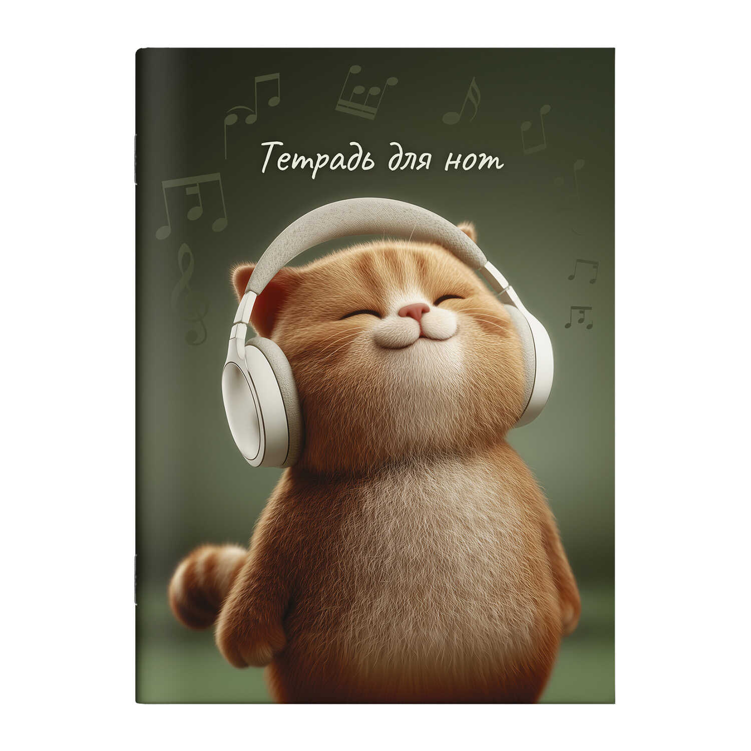 Тетрадь для нот 32 л. арт. 73250 КОТ-МЕЛОМАН /А4, белый офсет, мягкий переплёт (2 скобы), облож.- мелованный картон 190 г/м²