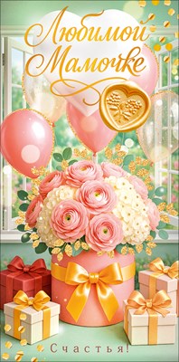 Конверт для денег «Любимой мамочке» (цветы, подарки, воздушные шары) 2037