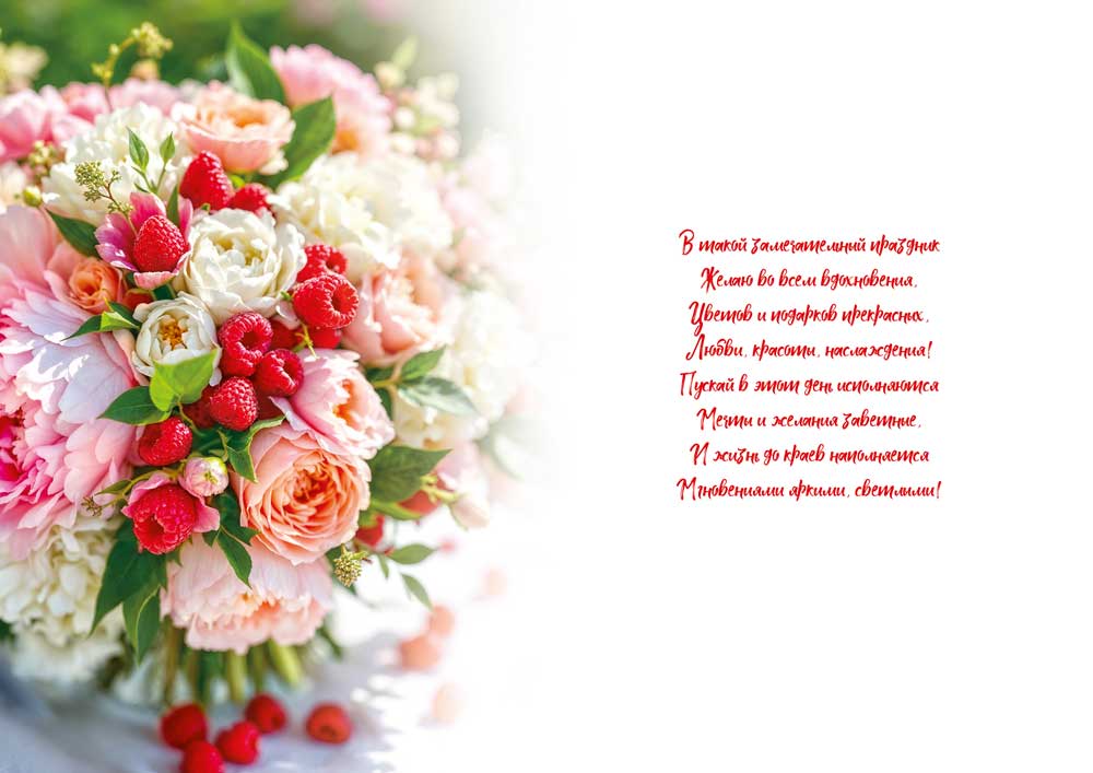 Открытка А4 «Поздравляю!» (букет с ягодами малины) текст 1407