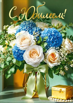 Открытка А4 «С юбилеем!» (букет роз и гортензий) текст 1409