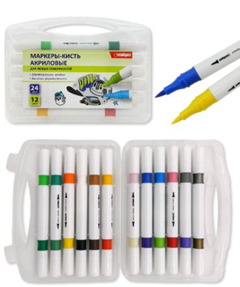 Набор маркеров акриловых 24цв 1-4мм INTELLIGENT DE-99 Двусторонние кисть вод осн в футляре 6998
