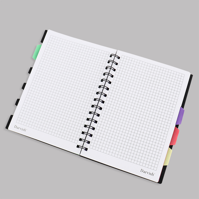 Блокнот А5 120л клетка Черный с разделителями Darvish 2305