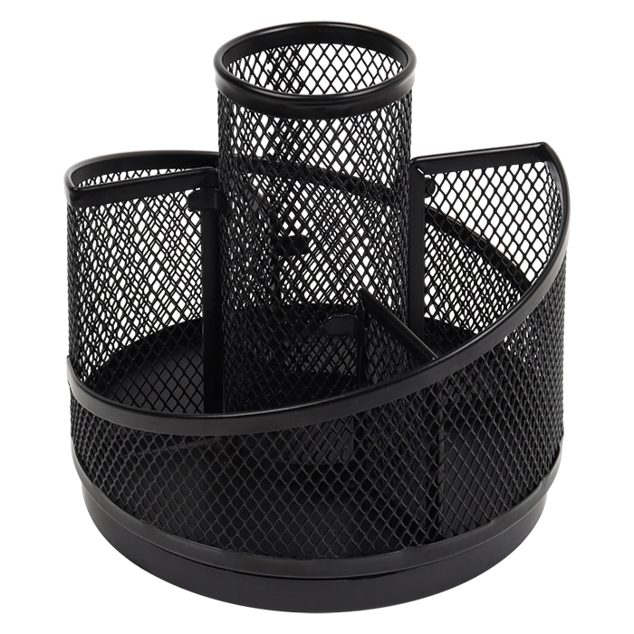 Предназначен для организации пространства на рабочем столе. Органайзер вращающийся на 5 отделений. Цвет: черный. Упаковка: кар. кор.14*13,5*14см