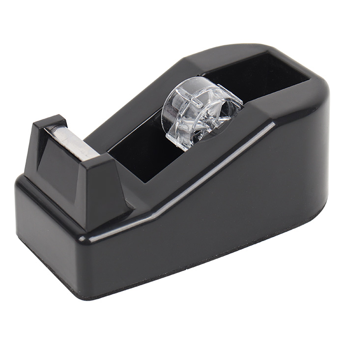 Диспенсер настольный для клейкой ленты (19мм), пластиковый корпус, снабжен стальным ножом, имеет нескользящее основание. Цвет: чёрный. Удобен в использование в офисе и дома. Скотч в комплект не входит!!! Размер 10*5*4 см. Упаковка — картон.коробка10,5*4,5*6 см.