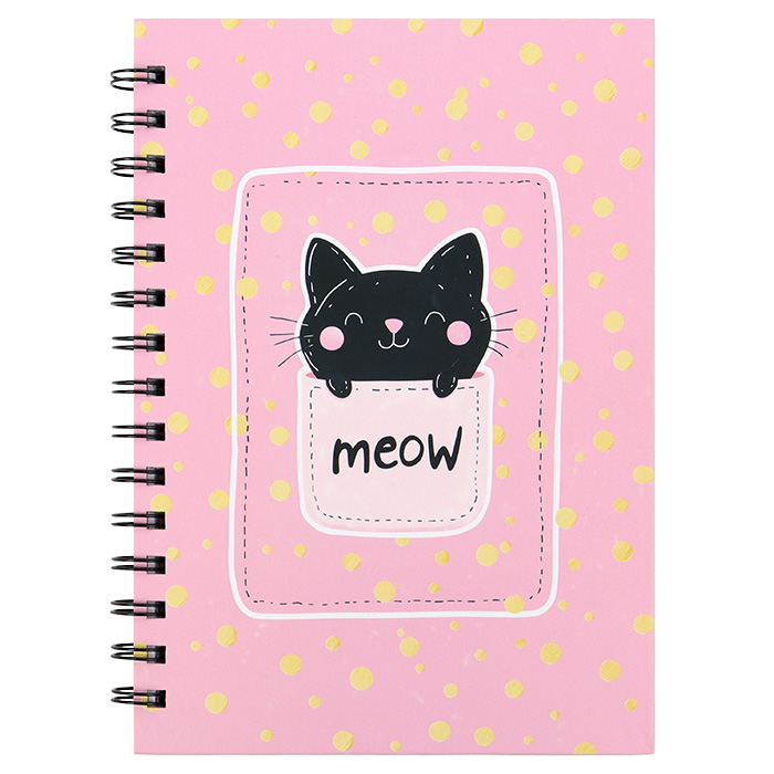 Записная книжка А5 80л клетка на гребне Котик в кармашке Darvish 2341