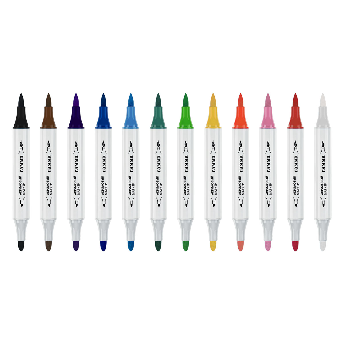 Набор маркеров акриловых 12цв Гамма «Классические» двусторонние пластик.бокс 15062025_12