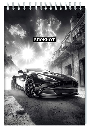 Блокнот А5 80л клетка на гребне Авто на черном Апплика 4792