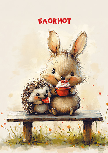 Блокнот А6 40л клетка на гребне Зайка и ежик Апплика 5652