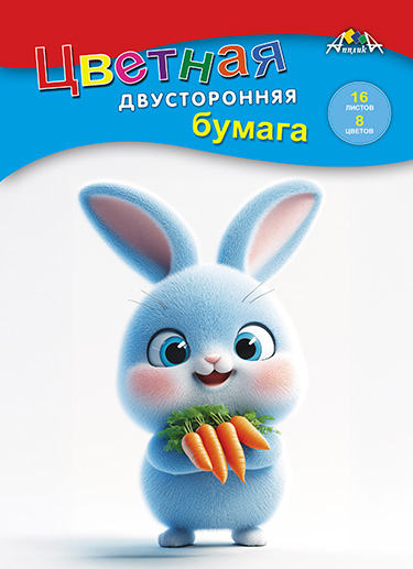 Цветная бумага 16л 8цв А4 2-х сторонняя Пушистый зайка Апплика 5881