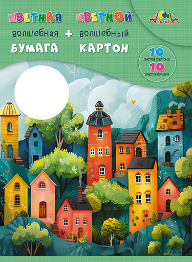 Картон цветной 10л 10цв + цветная бумага 10л 10цв А4 Цветные домики Апплика 7397