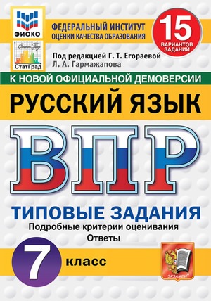 ВПР. ФИОКО. СТАТГРАД. РУССКИЙ ЯЗЫК. 7 КЛАСС. 15 ВАРИАНТОВ. ТЗ. ФГОС НОВЫЙ