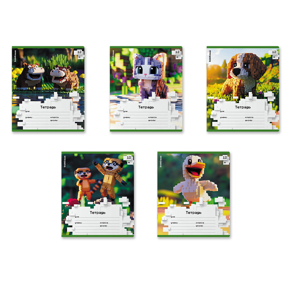 Тетрадь 12 лин ErichKrause Pixel Animals MIX-PACK 64829