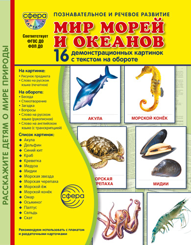 Демонстрационные картинки СУПЕР Мир морей и океанов. 16 демонстрационных картинок с текстом В ПАПКЕ (173х220 мм) /НОВИНКА/