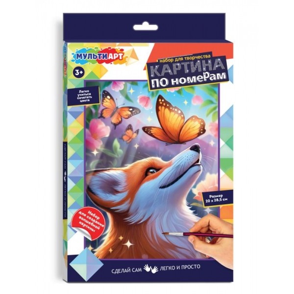 Набор д/творч Картина по номерам 20*28,5см Лис и бабочка Мульти арт 2264