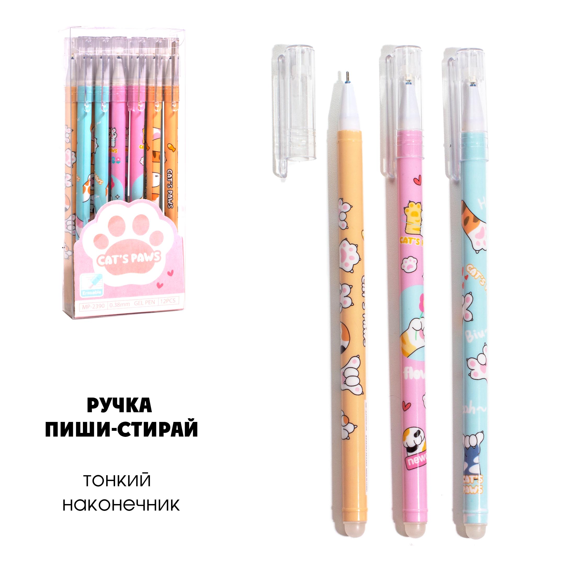 Ручка гелевая пиши-стирай 0,38мм Лапка-царапка 3909