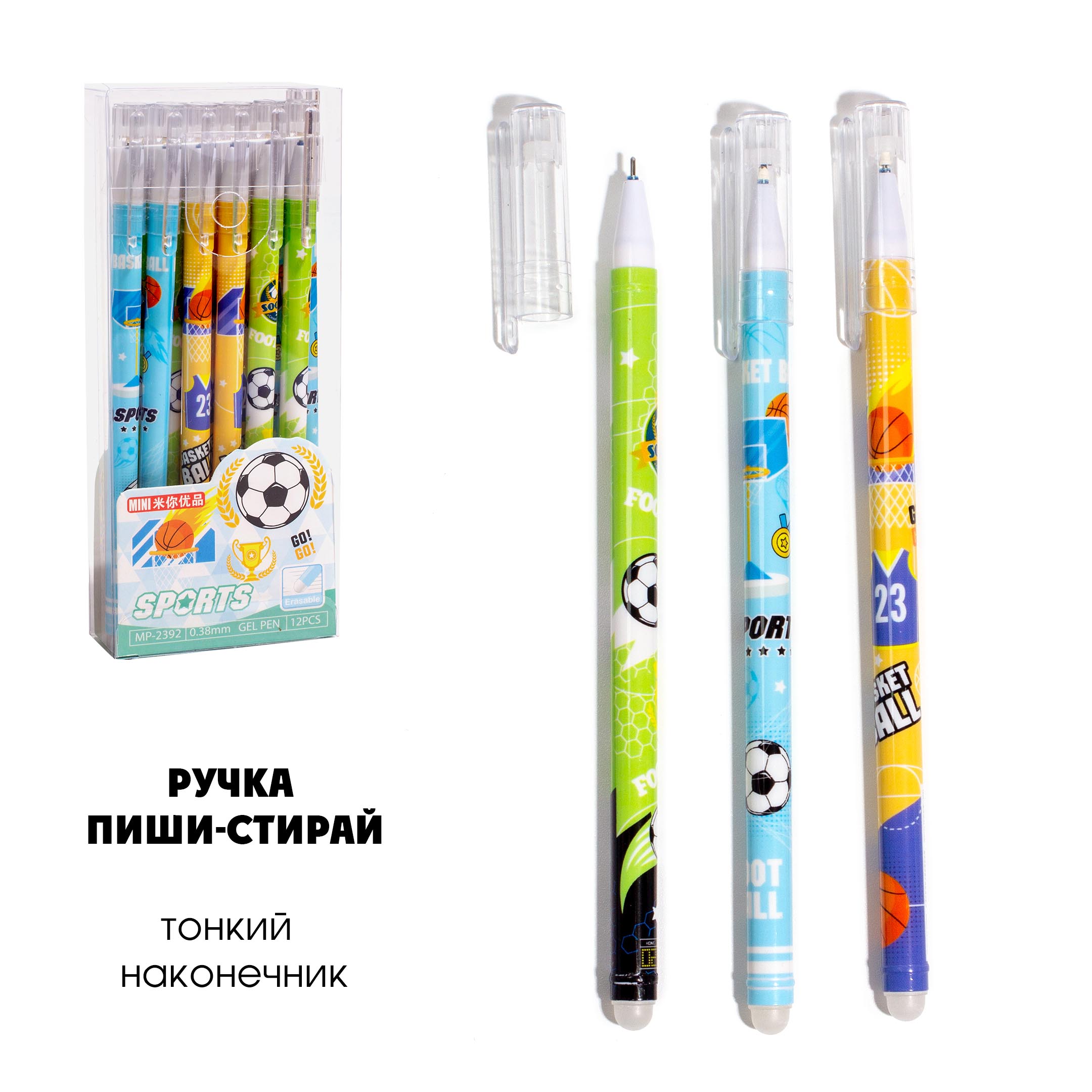 Ручка гелевая пиши-стирай 0,38мм Футбол 3923