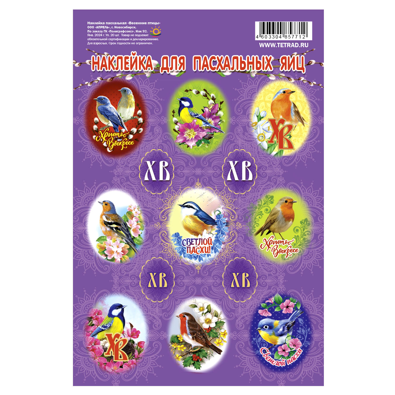Наклейка пасхальная 11*17 Весенние птицы 7712