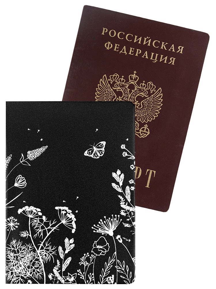 Обложка на паспорт Полевые цветы ч/б ПВХ ОП-0664