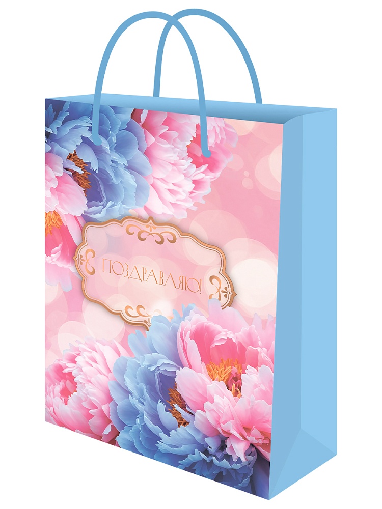Пакет подарочный с матовой ламинацией 22х31х10 см (ML) Пышные пионы 190г ППК-2759