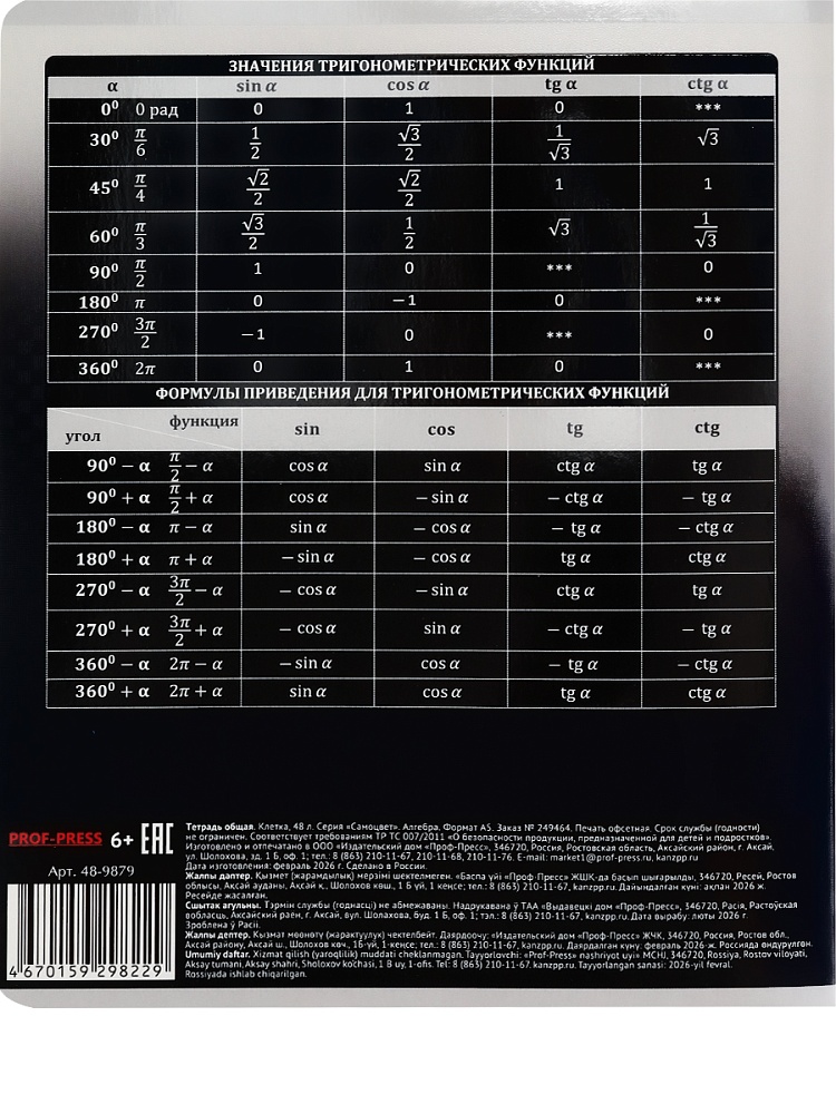 Тетрадь предметная 48 клет Самоцвет Алгебра твин-лак Проф-пресс 48-9879