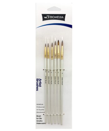 Кисти 6 шт набор Синтетика CD-24 Круглые (№ 000, 00,0, 1, 2,3) в ПВХ пакете 0243