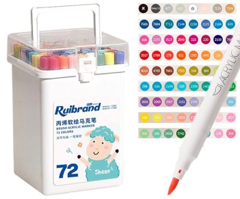 Набор маркеров акриловых 72 цв DN-28/DP-208 1-4мм кисть круг бел корп в пласт бокс 2088