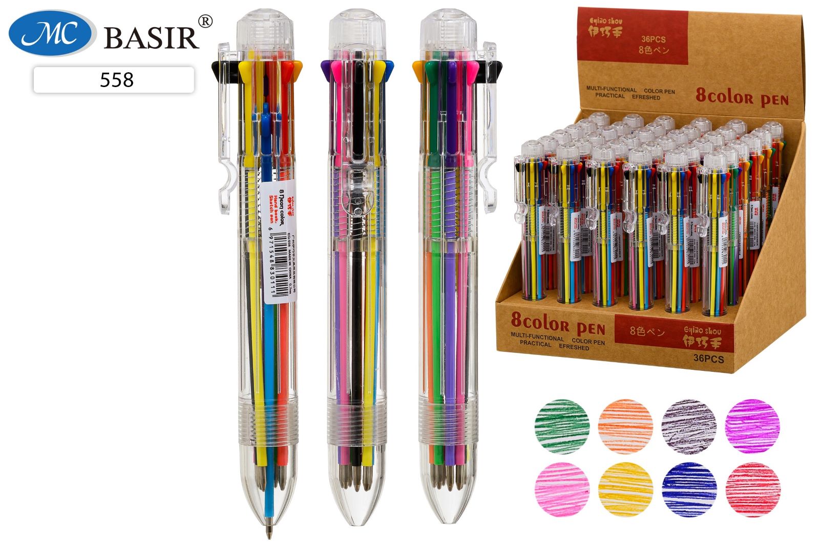 Ручка авт шар 0,7мм 8-ми цветная прозрачный корпус 0111