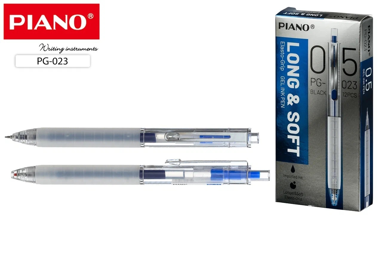 Ручка авт гел син 0,5мм Piano LONG&SOFT PG-023 игольчатый наконечник, объёмный стержень, прозрачный корпус, резиновый держатель 0441