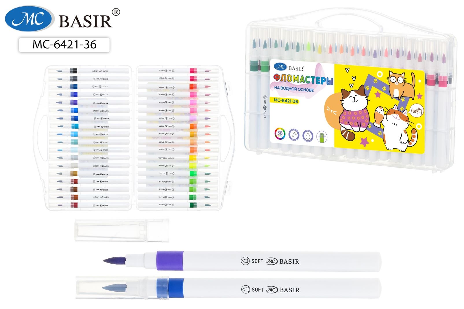 Фломастеры 36цв Кошки с мягкой кистью, на водной основе, вентилируемый колпачокм пластмассовый бокс 2293