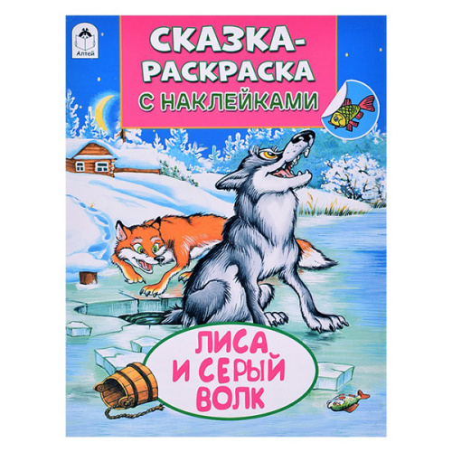 Раскраска-сказка с наклейками Лиса и серый волк А4