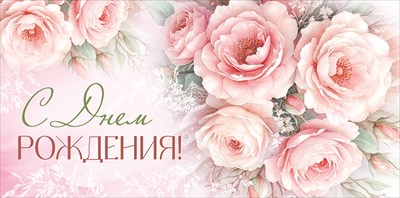 Конверт для денег «С Днем рождения!» (пудровые розы) 1006