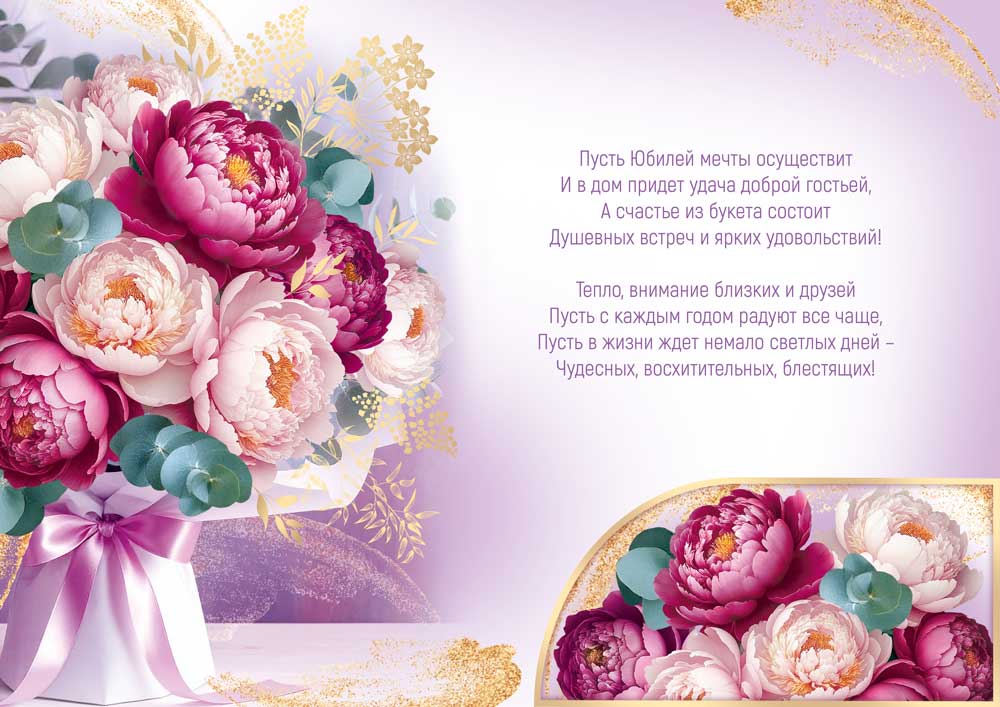 Открытка А4 «С Юбилеем!» (букет пионов) 1984