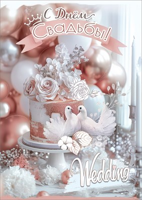 Открытка А4 «С Днём Свадьбы!» текст 0953