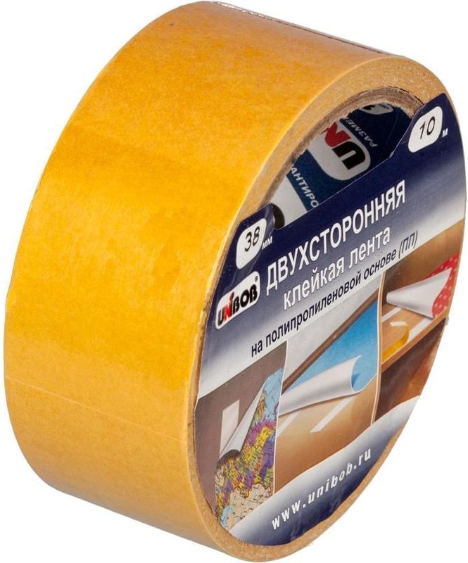 Клейкая лента двухсторонняя UNIBOB 38мм х 10м (полипропилен) инд. упаковка 0066