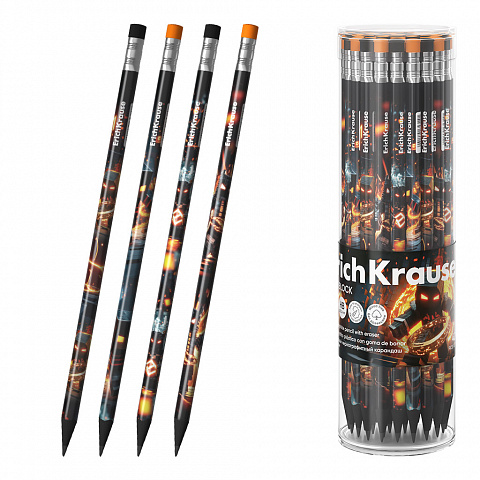 Карандаш ч/г с ластиком HB ErichKrause Mine Block трехгранный пластик ассорти