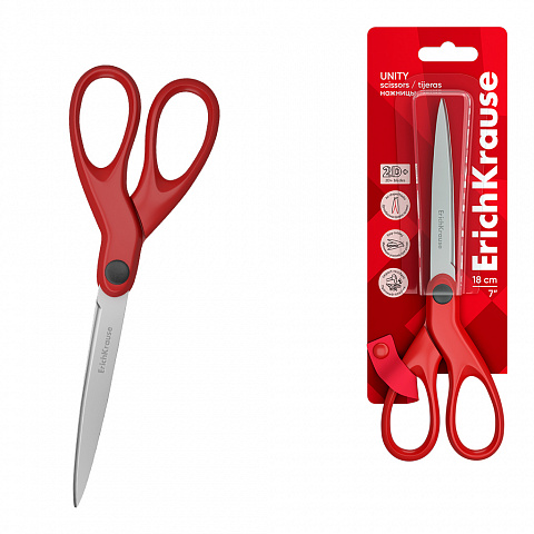 Ножницы 18см ErichKrause Unity красный в блистере 50014