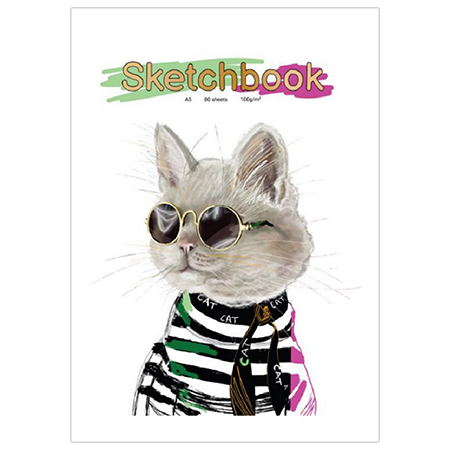 Скетчбук А5 80л Кот в очках 7БЦ мат лам на резинке 100г С80-3060