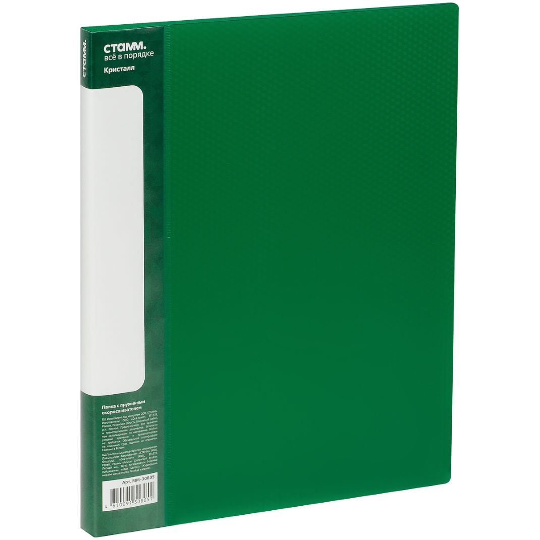 Папка c пружинным скоросшивателем А4 17мм 700мкм Стамм «Кристалл» пластик зеленая 30805