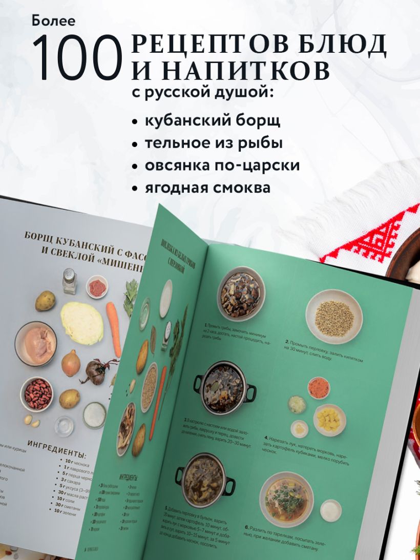 Эта книга — для тех, кто хочет прикоснуться к богатству русской кухни: от простых повседневных блюд до традиционных угощений, которыми издавна славился наш стол. Здесь собраны рецепты, позволяющие наслаждаться и быстрым приготовлением, и неторопливым кулинарным творчеством. Каждый рецепт сопровождается пошаговыми инструкциями и фотографиями, которые сделают готовку легкой и увлекательной. Для удобства книга дополнена подробным содержанием и алфавитным указателем, чтобы вы могли быстро находить нужные блюда и ингредиенты.