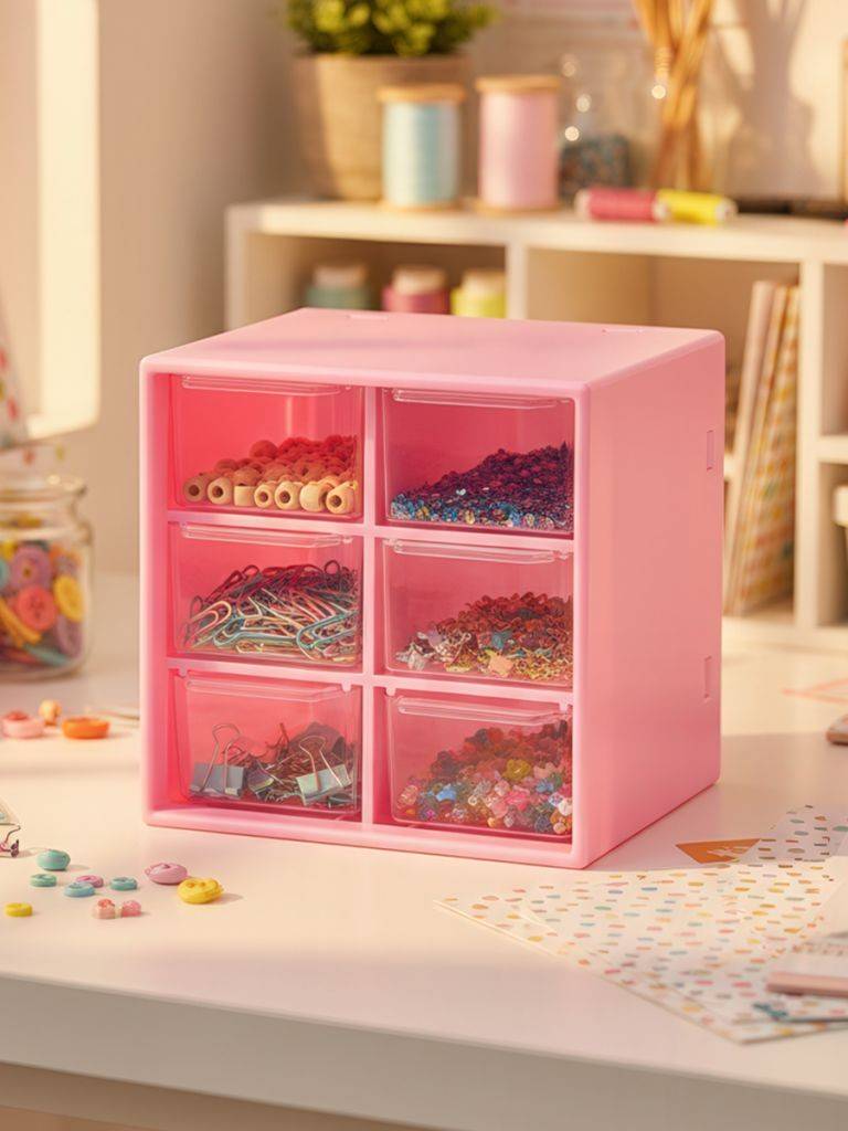 Органайзер настольный пластиковый 6 отд Шесть ячеек розовый 2910