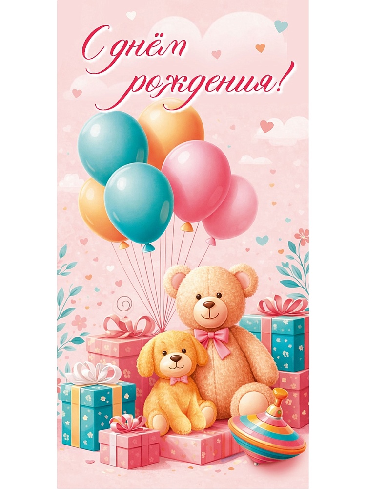 Конверт для денег «С днем рождения!» (праздник с мишкой и щенком) 1-04-0668