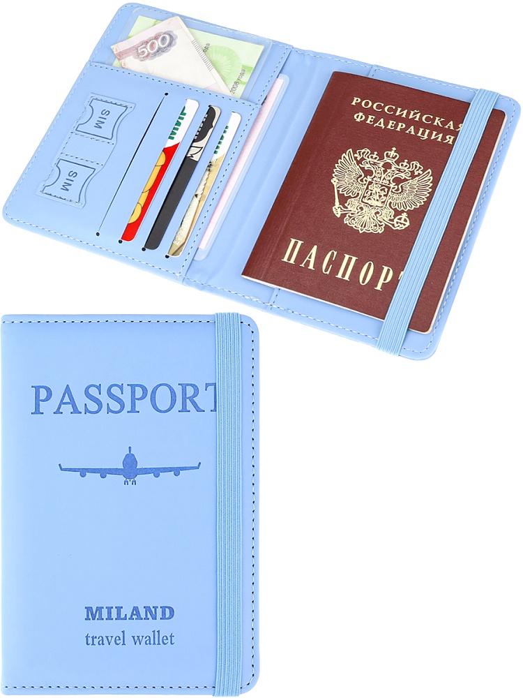 Обложка на паспорт с отсеком для карт на резинке «Отпуск» голубая ОП-9627